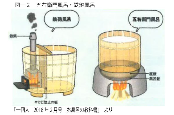 なお、地方では、相変わらず昔ながらの薪・石炭などを燃料とする五右衛門風呂、鉄砲風呂を使っていました。(図-2 参照)