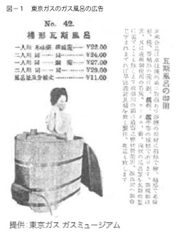 大正3(1914)年に出された東京ガスの風呂釜のPR資料を見ると当時の状況がわかります。(図-1 東京ガスのガス風呂の広告)