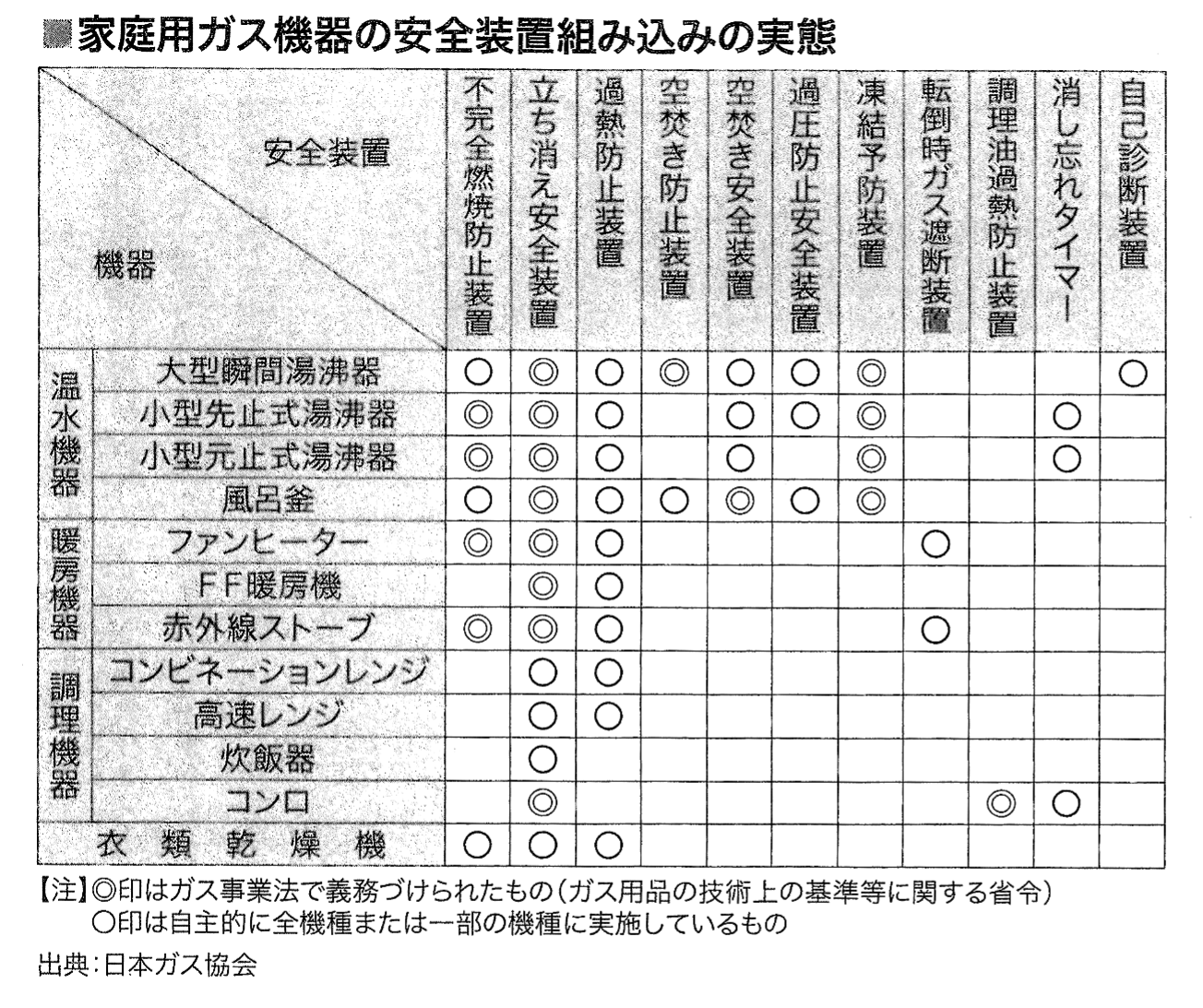 (1)ガス機器の安全性に関する基本仕様と具体的な安全装置