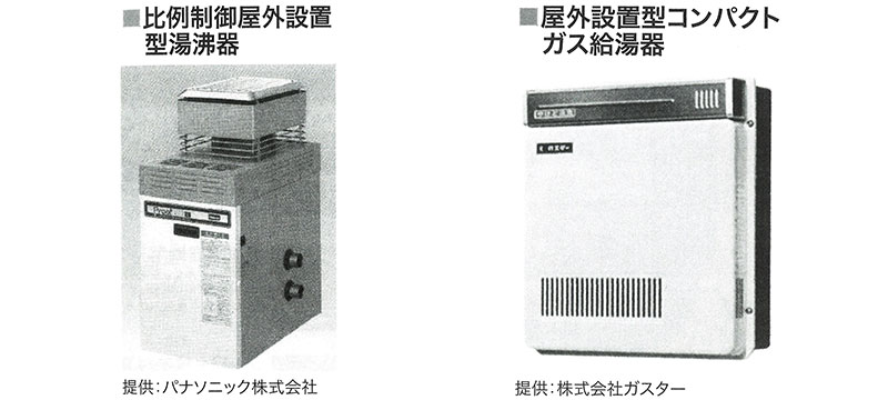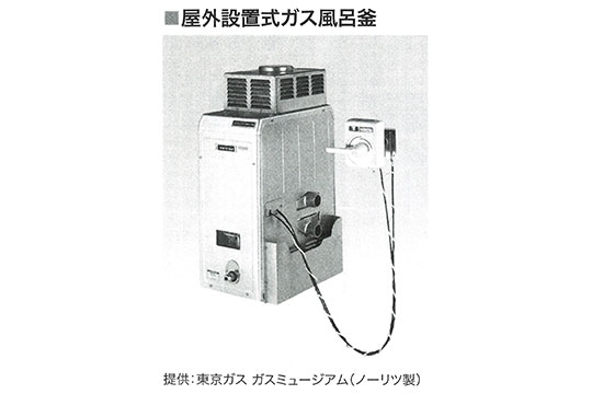 この機器は、デッドスペースとされていた集合住宅のパイプシャフトにも設置できるようコンパクトに設計されており、ガスの配管や元栓のあるところにガス機器を設置するという、思い切った発想から成り立っていました。なお、今日の集合住宅では、外置型ガス給湯器がパイプシャフト内設置の主流となっています。