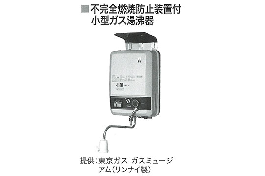 この対策として、昭和58(1983)年になり、ようやく不完全燃焼防止装置が搭載された最初の小型ガス瞬間湯沸器が登場しました。